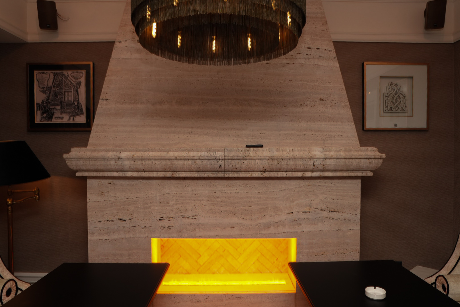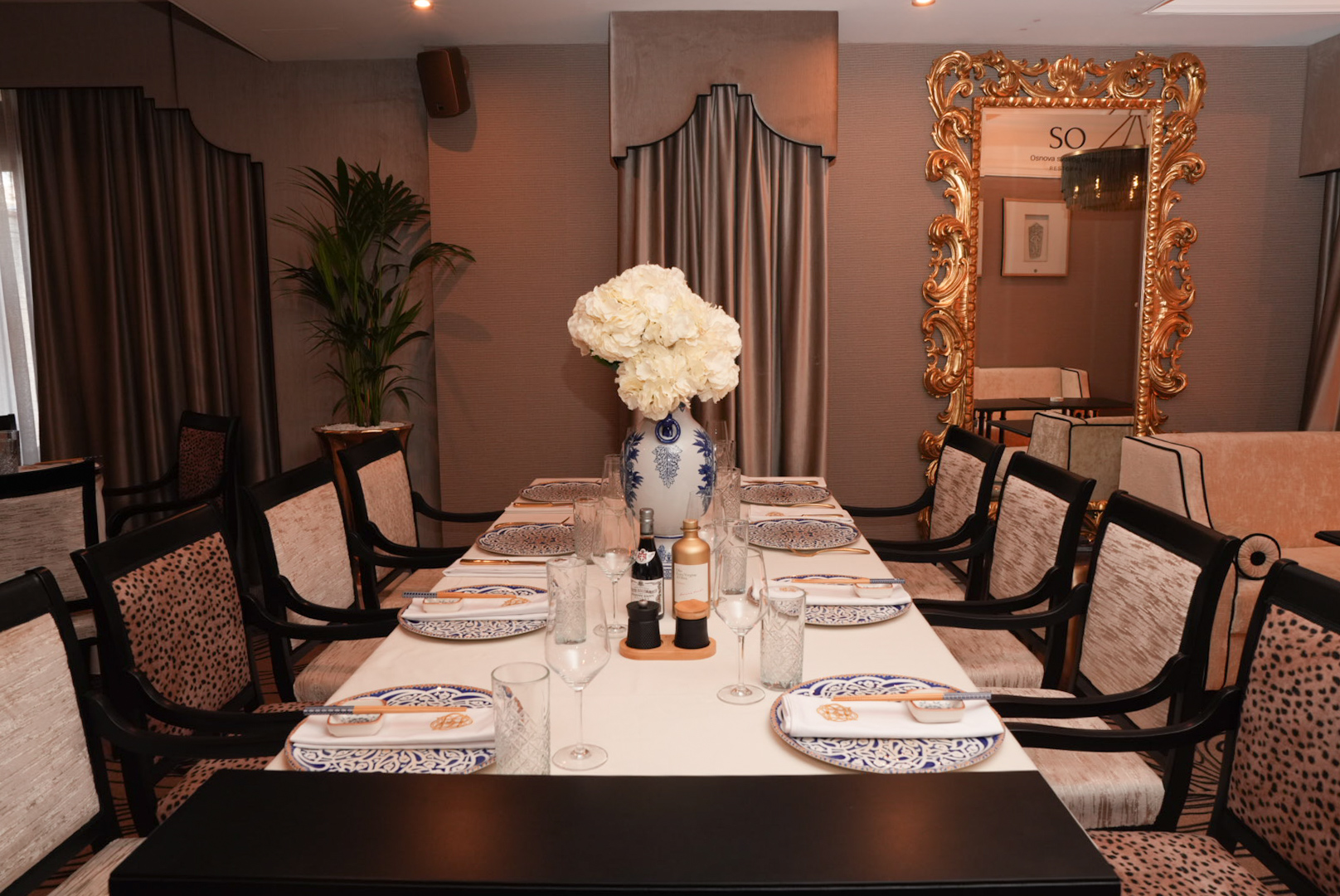 Ono što restoran SO izdvaja jeste enterijer koji funkcioniše kao zaokružena umjetnička cjelina. Koncept počiva na savremenoj interpretaciji klasičnog salona, gdje se tiha raskoš gradi kroz plemenite materijale i kontrolisanu toplinu svjetla.